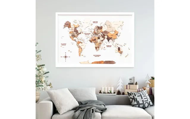 3d Verdenskort Træ Multifarvet I Hvid Ramme