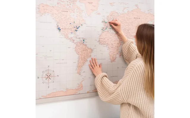 Verdenskort Med Nåle På Lærred Charcoal